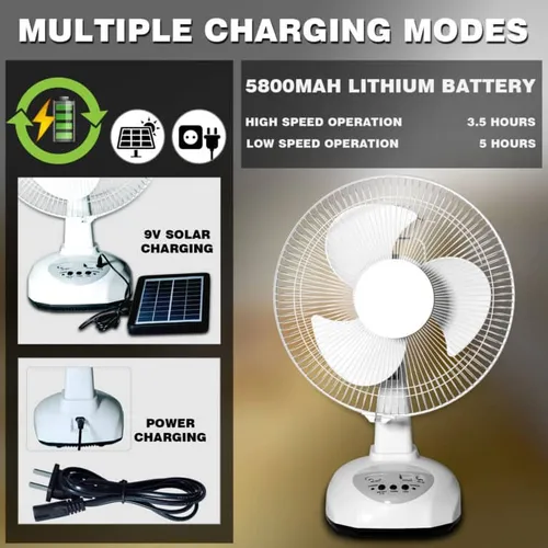 Duravolt 12 Inches Solar & Electric Rechargeable fan