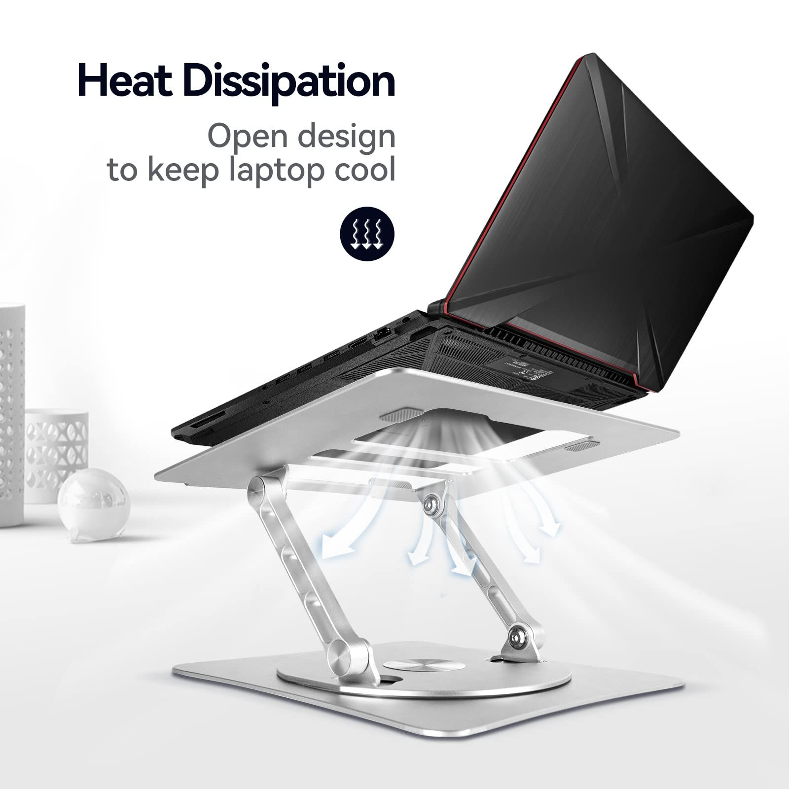 - 360° Rotatable Design:360 ° all-round rotation, easy to change the angle of the laptop stand, at any time to turn to deal with different occasions need the angle, and the sound issued by the rotation of the stand is very decompression.
